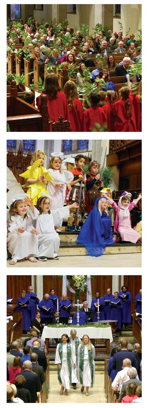 The 11:00 a.m. service includes Covenant Choir, brass, timpani, and organ.