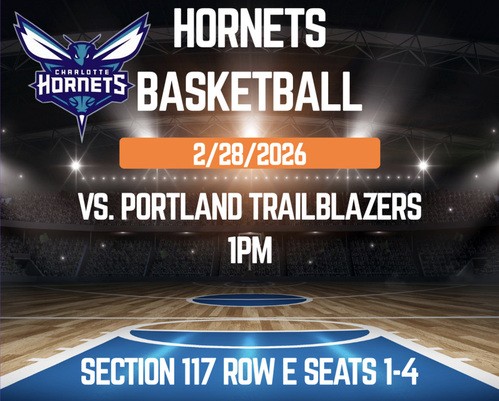 Cheer on the Charlotte Hornets from Section 117, Seats 1-4 as they take on the Trailblazers on Feb 28. These are great seats, about 10 rows behind the basket, offering a fantastic view of the action. Such a fun outing for family or friends—don’t miss this exciting NBA matchup!