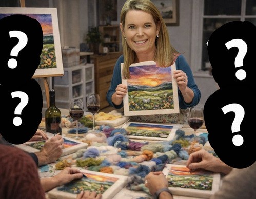 Join needle felter Ellen Holloway for a cozy, creative evening of needle felting. This relaxed, hands-on class is for 6–8 adults (18+), with all supplies provided and a few bottles of wine included. Together we’ll create a peaceful landscape scene featuring a glowing sunset sky, grassy fields, sheep grazing in the distance, and flowers in the foreground. No experience necessary; you’ll be guided step by step and leave with a beautiful, finished piece of art, ready to frame and hang or gift for someone’s special occasion.