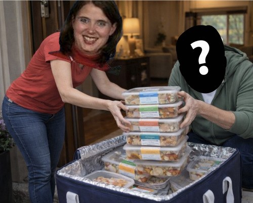 Enjoy a home cooked meal for four, delivered to your home with heating instructions once a quarter. Your meals will include an entrée, two sides, and a dessert. A few of your entree options are... An Italian Feast (choose from beef braciole, baked ziti, red or white lasagna, spaghetti and meatballs, chicken or salmon piccata/marsala/caprese/saltimbocca/parmesan); Boeuf Bourguignon; Pecan Crusted Salmon; Southern Fried Chicken Cutlets; Roasted Turkey Breast; Smoked Pork BBQ. All prepared lovingly by LeAnne Stipp!