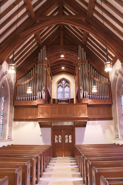 The first organ in Morrison Chapel, an 1885 William Johnson and Sons instrument, came from the old St. Mark’s Lutheran Church of Charlotte. Enlarged and rebuilt by the Schlicker Organ Company in 1962, the instrument served the congregation from that year until 2012. Gifts from individuals and local foundations established seed money for planning a new instrument. In 2010 a bequest from the estate of Esther L. and Charles E. Fishell provided the funds to build and endow a new organ as well as support other musical initiatives. Using information gathered in 2005, an ad hoc committee selected A.E. Schlueter Pipe Organ Company to build a 32-rank organ of great versatility and warmth. Its tonal palette, set in the American Classic Style, resembles the design of the Sanctuary’s Aeolian-Skinner Organ. Completed and dedicated in 2012, the instrument serves as both worship leader and concert organ. In January 2014, the organ will be the cover photo and feature article of The American Organist magazine. The picture at the top of this page is also of the Chapel Organ.